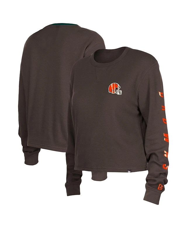 Women's New Era Brown Cleveland Browns Thermal Crop Long Sleeve T-shirt