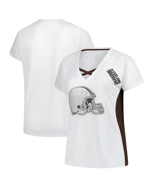 Fanatics Women's White Cleveland Browns Athena Lace-Up V-Neck T-Shirt