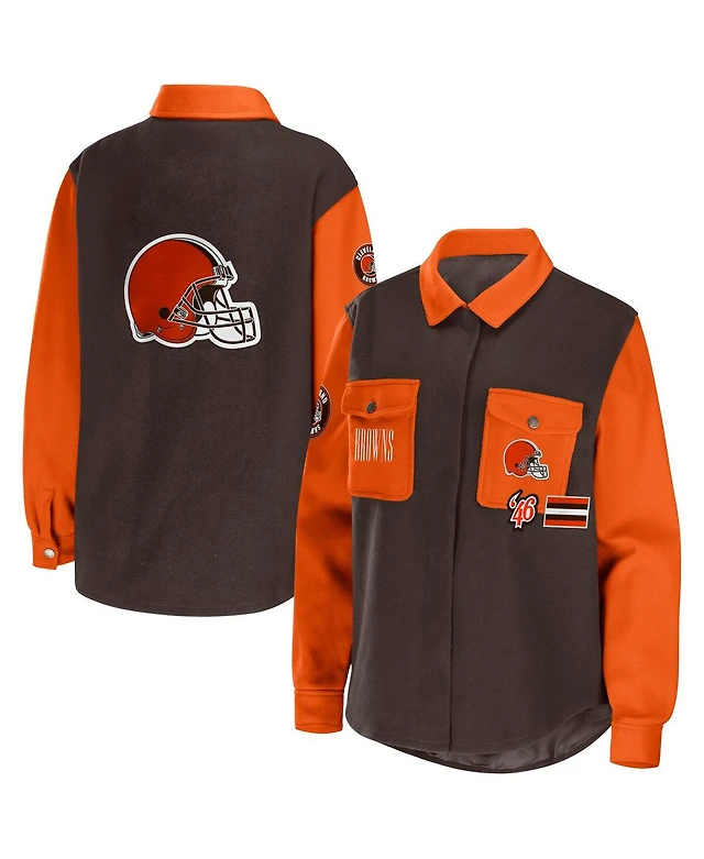 Wear by Erin Andrews Women's Brown Cleveland Browns Snap-Up Shirt Jacket