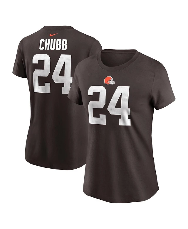 Women's Nick Chubb Brown Cleveland Browns Name and Number V-Neck T-shirt