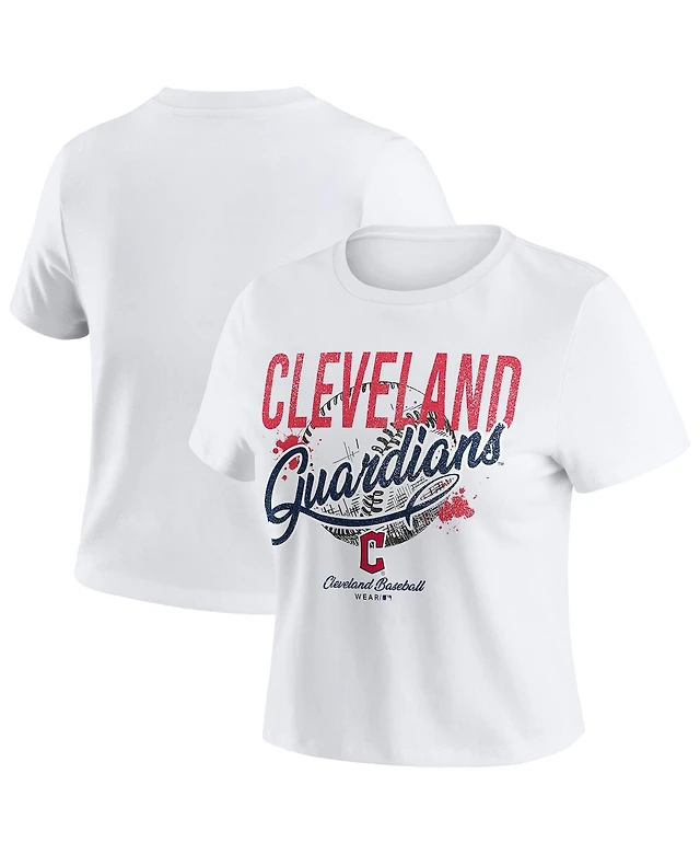 Wear by Erin Andrews Women's White Cleveland Guardians Distressed Cropped Baby T-Shirt