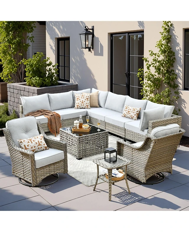 Xizzi 10 Piece Outdoor Patio Furniture with Swivel Chairs,All Weather Wicker Sectional Coversation Set Solar Coffee Table, Single Modular Chairs
