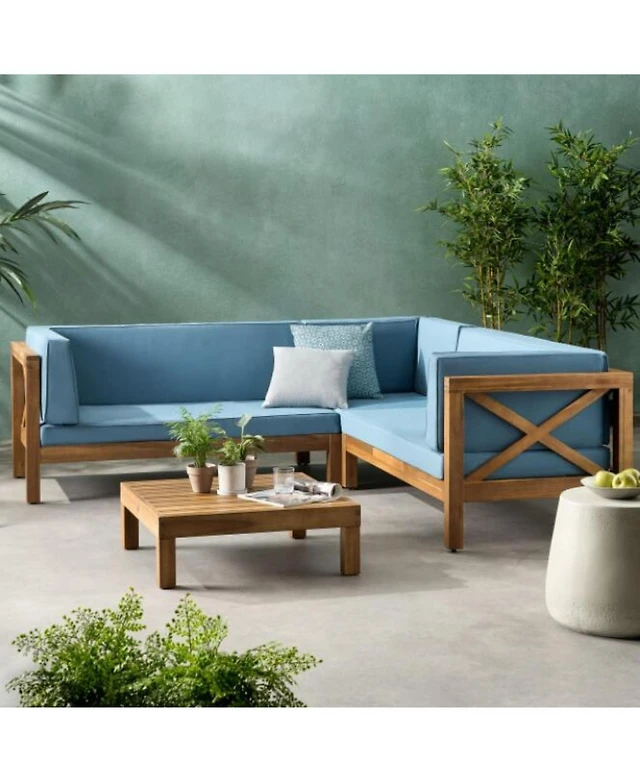 4 Pieces Acacia Wood Outdoor Sofa Set