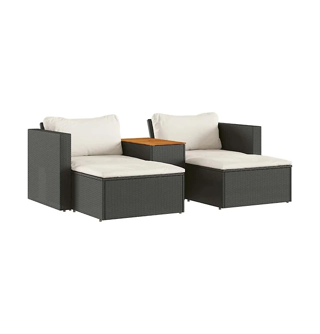 Patio Sofa 2-Seater with Cushions&Table Poly Rattan