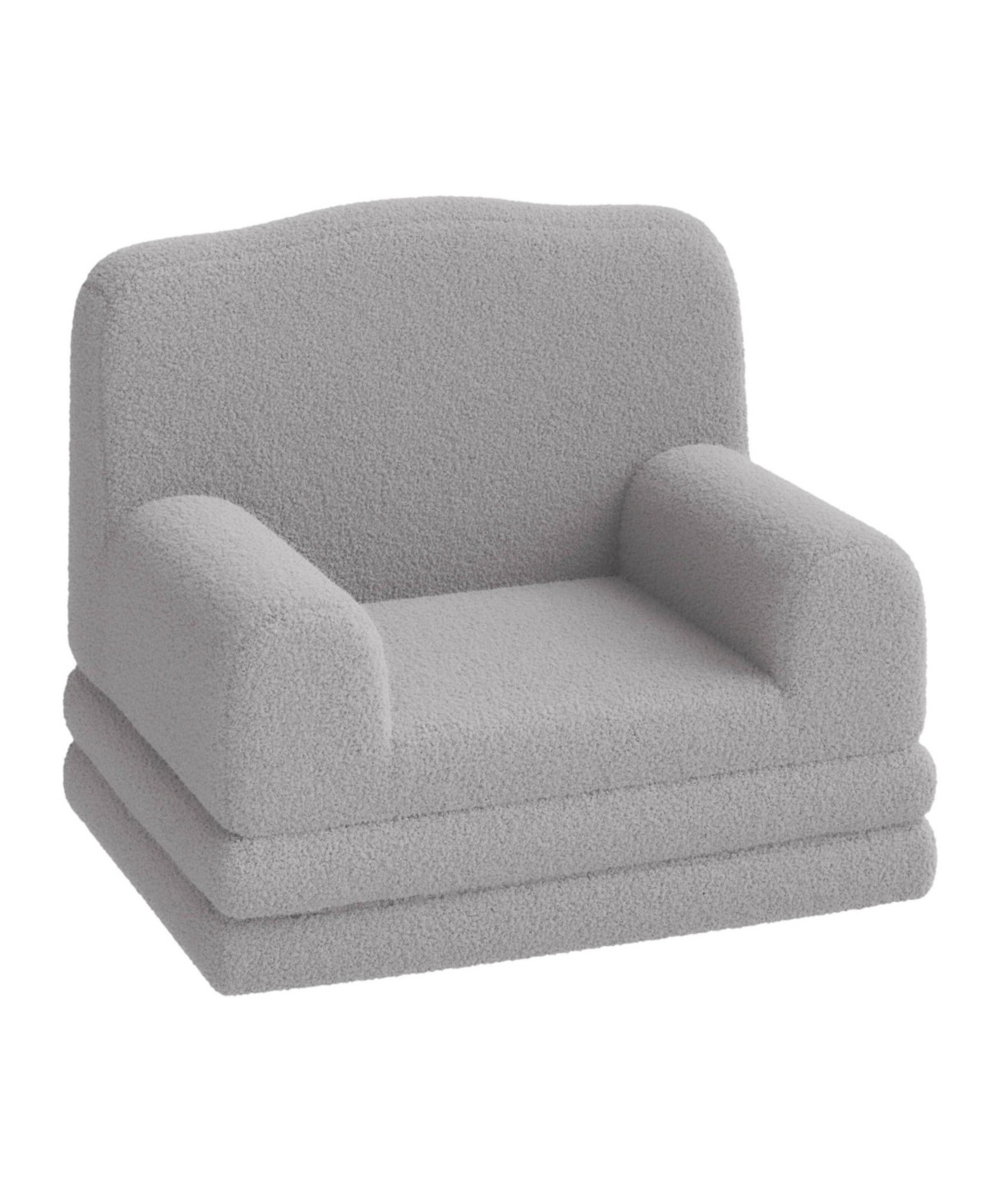 gaomon Kids Couch, 2-in-1 Convertible Teddy Fleece Fabric Toddler Sofa Chair, Soft Fold Out Couch Lounger for