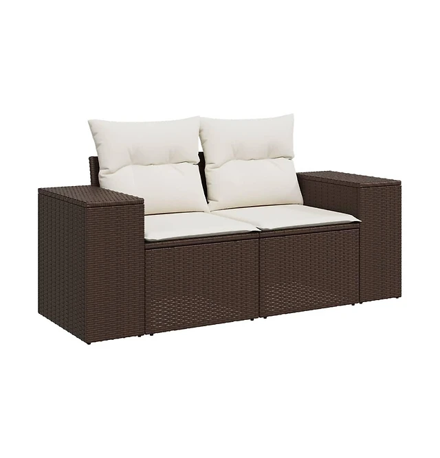 Garden Sofa Brown Poly Rattan 2-Seater Removable Covers