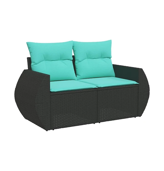 Garden Sofa Black, Blue Poly Rattan, Powder-Coated Steel 2-Seater