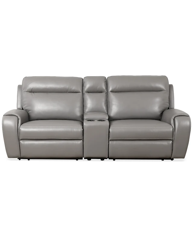 Greymel 74" Zero Gravity Leather Loveseat with Console and Power Headrests, Created for Macy's