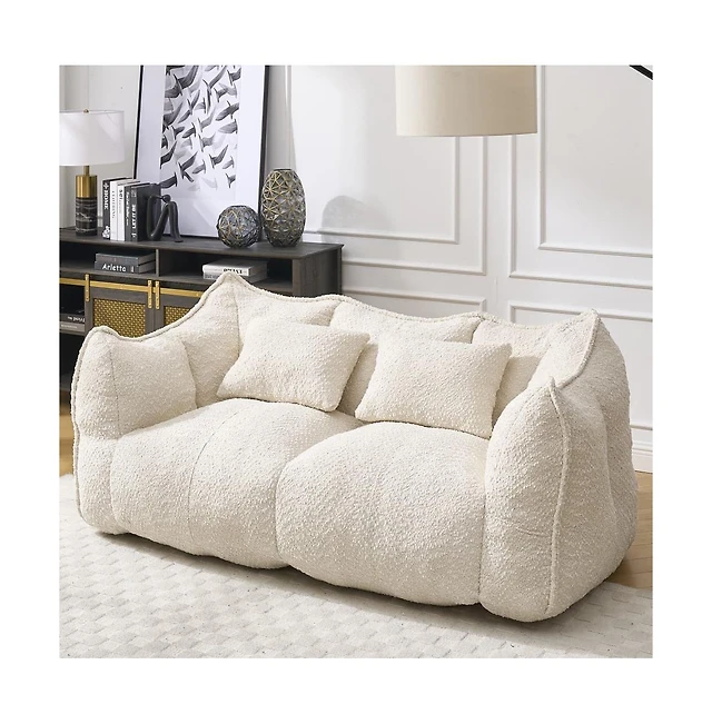 93.70 inches long, Teddy Sofa Fabric, with two matching pillows and three spacious and comfortable seats, for Apartment Office Living Room - Beige