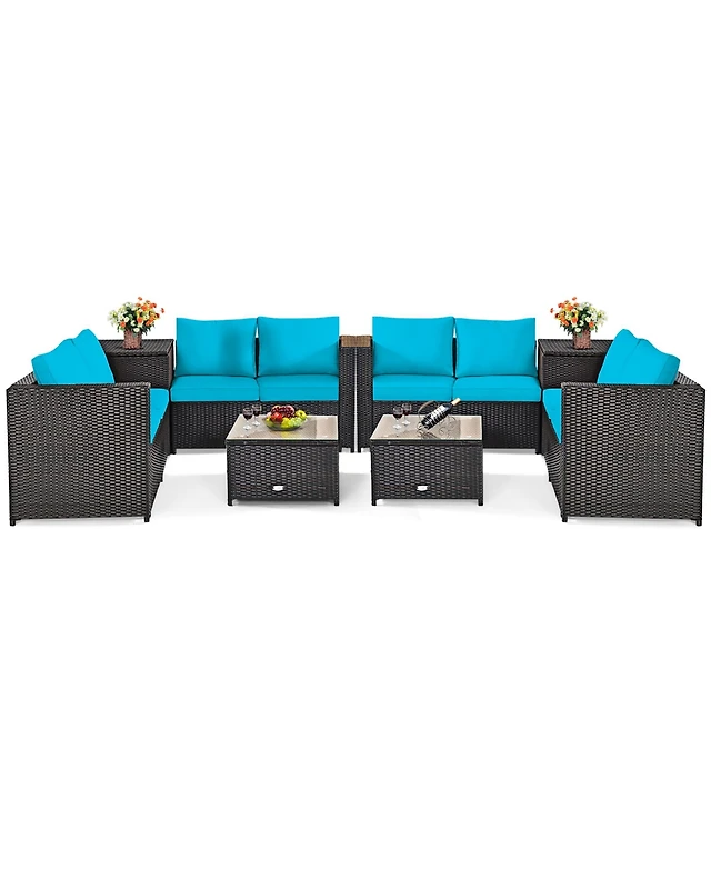 Gymax 8 Pcs Rattan Outdoor Patio Conversation Set Wicker Furniture Set w/ Chair Loveseat