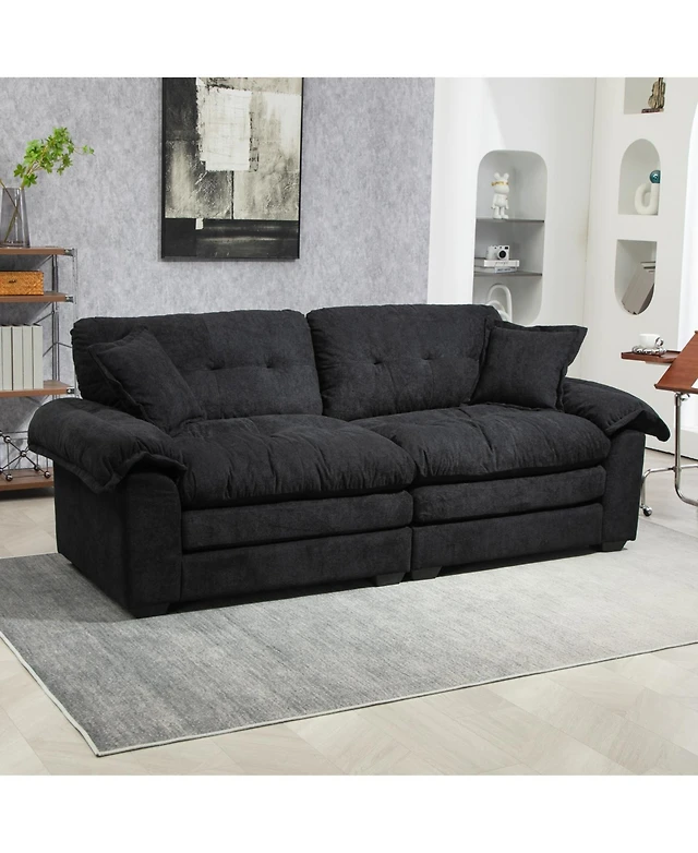 Streamdale Furniture Corduroy Two-Seater Sofa with 2 Storage Footrest,2 Seater Sectional deep seat sofa,Comfy Couches for Living Room,Black Sofa