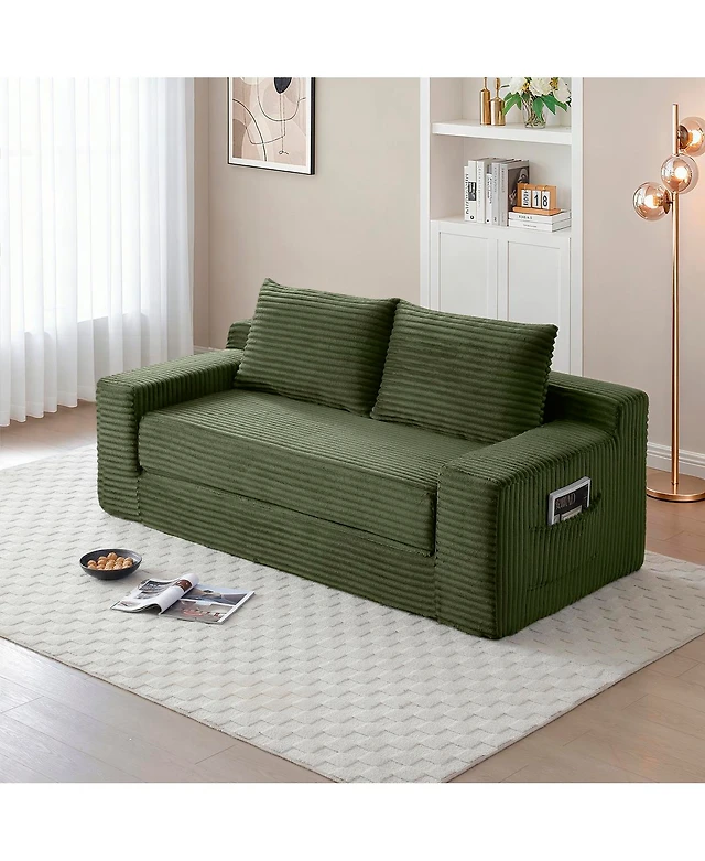 Clihome Loveseat Sofa Convertible Sleeper Bed with Pillow