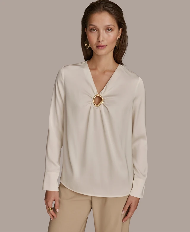Donna Karan New York Women's V-Neck Embellished Top