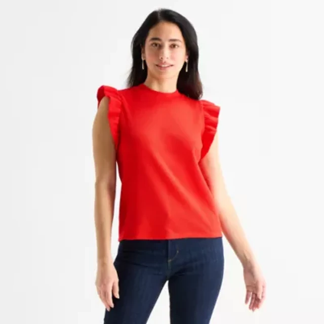 Liz Claiborne Womens Round Neck Short Sleeve Blouse