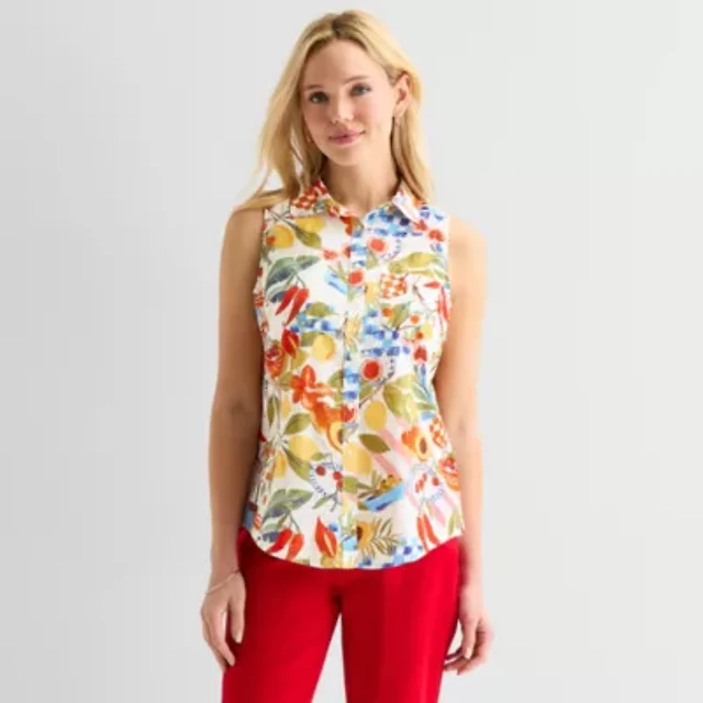 Kasper Women's Floral Pleat-Front Cap-Sleeve Top, Regular and Petites