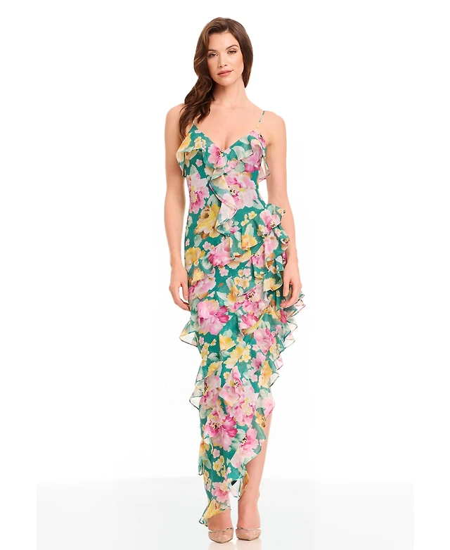 Siena Women's Floral Print Sleeveless High-Low Maxi Dress