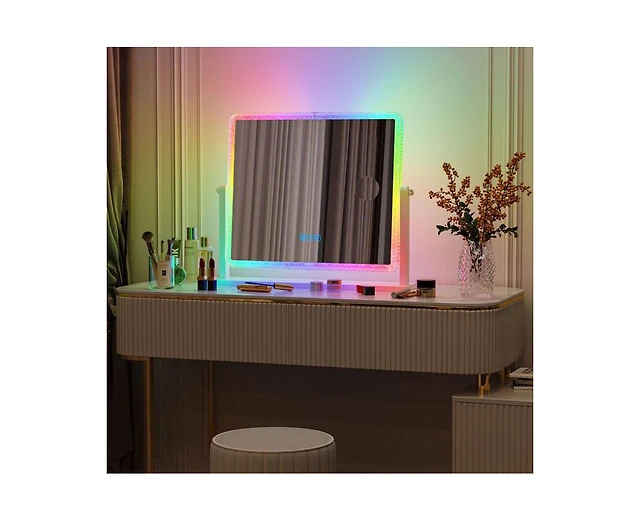 Amorho Led Bathroom Mirror, 32" x 32" with Front Light and Backlit, Stepless Dimmable Wall Mount Mirrors, Anti-Fog, Shatter-Proof, Memory, 3