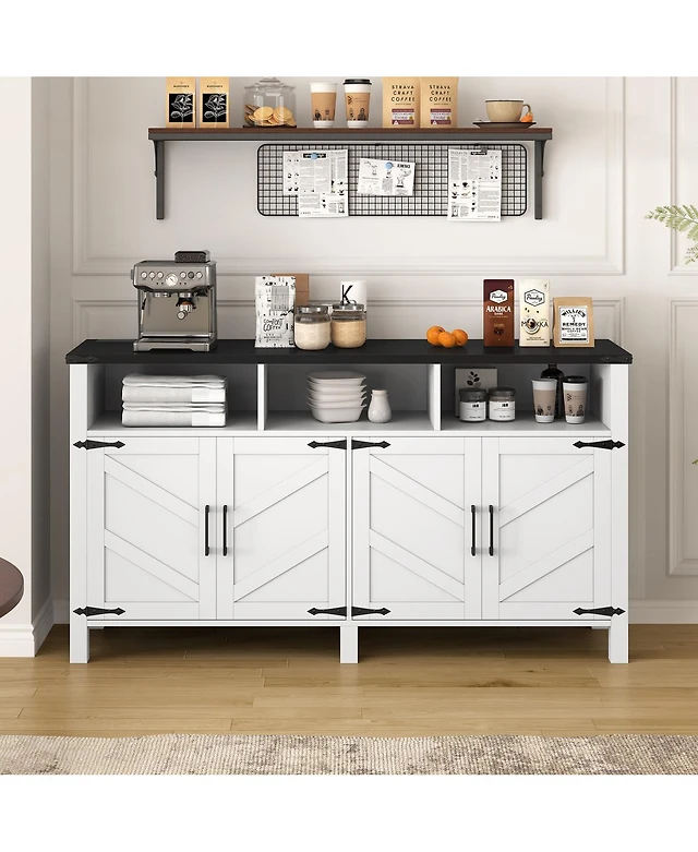 Yigii Farmhouse Storage Cabinet 2 Doors Shelves Rustic Buffet Sideboard for Kitchen Living Room Bathroom