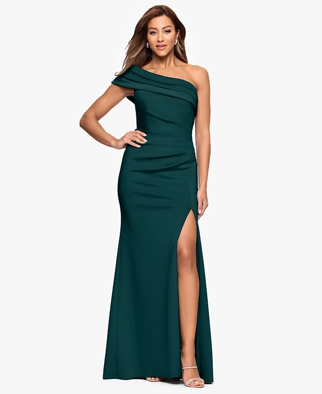Xscape Women's Ruffled One-Shoulder Scuba Gown