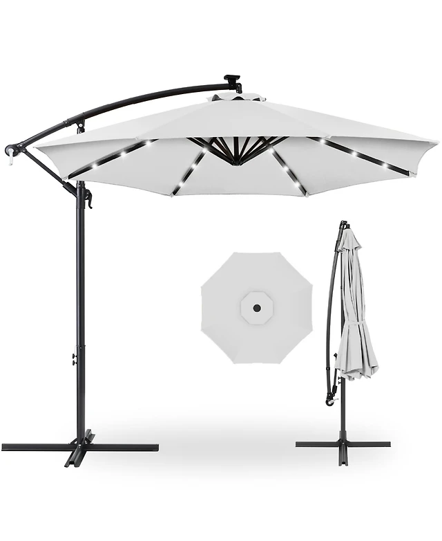 10 Feet 360° Rotation Solar Powered Led Patio Offset Umbrella without Weight Base