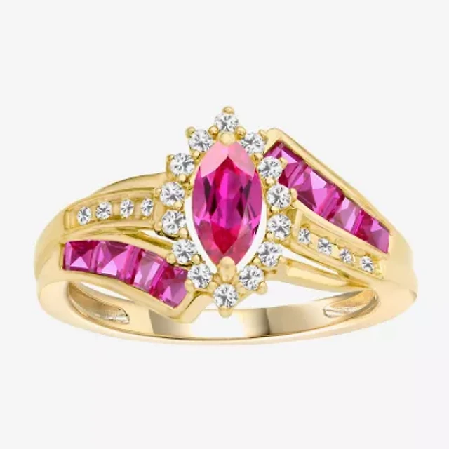 Womens Lab Created Gemstone Sterling Silver Halo Cocktail Ring