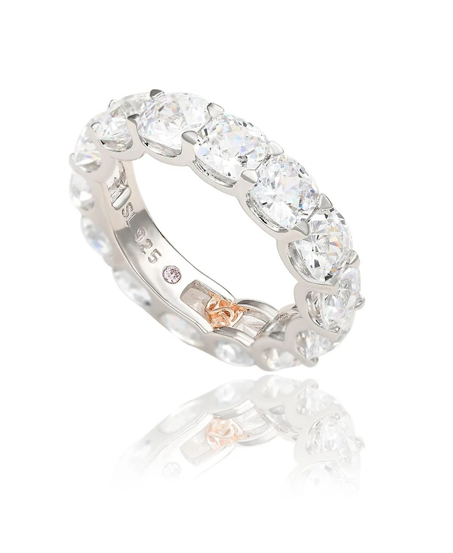 Sterling Silver 18K Rose Gold Plated Round-cut Cubic Zirconia Ring