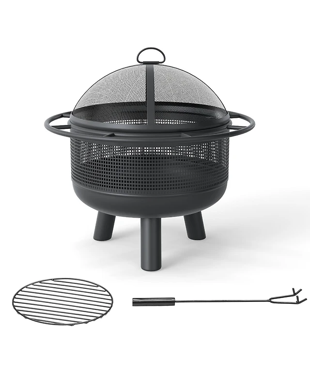 Sugift 24 in Wood Burning Fire Pit with Log Grate and Mesh Screen