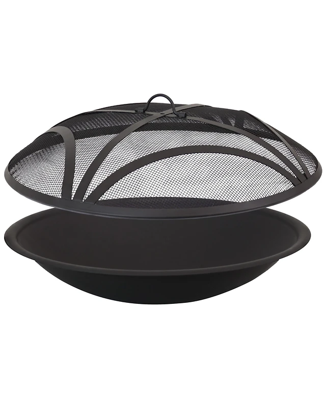 Outsunny Fire Pit with Spark Screen and Poker, 18" Wood-burning Bowl,