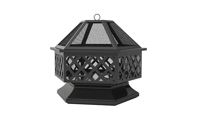 Outsunny Fire Pit with Spark Screen and Poker, 24" Wood-burning Bowl,
