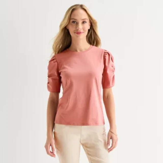 St. John's Bay Womens Round Neck Short Sleeve Blouse
