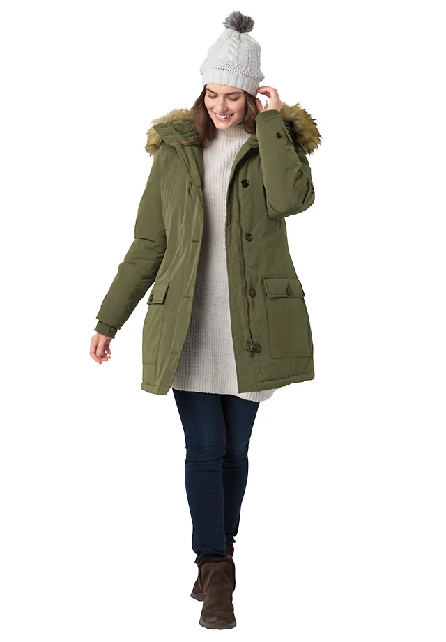 Woman Within Women's Plus Colorblocked Taslon Anorak