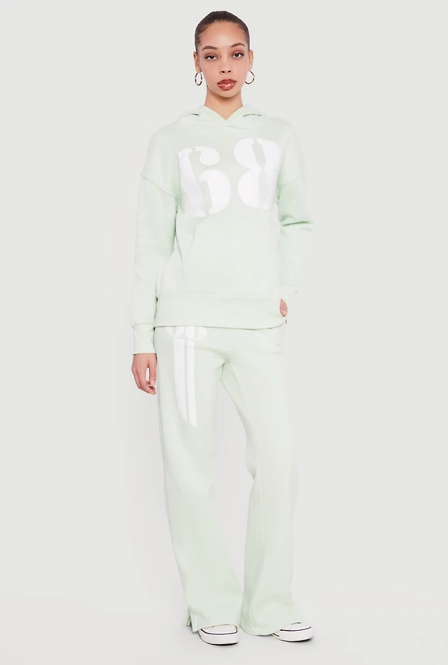 Letter Detail Fleece Lined Hooded Sweatshirt