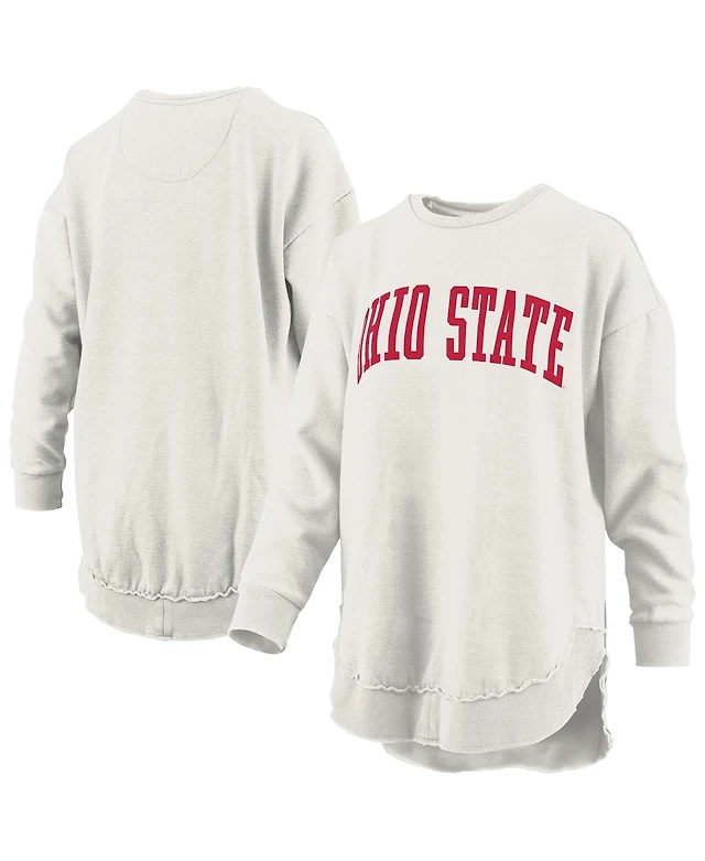 Pressbox Women's Oatmeal Ohio State Buckeyes Melange Poncho Vintage Fleece Long Sleeve Pullover Sweatshirt