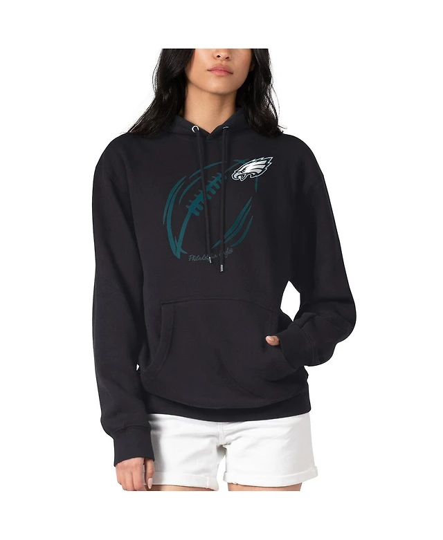 G-iii 4Her by Carl Banks Women's Black/Silver Philadelphia Eagles Metallic Print Football Sketch Fleece Pullover Hoodie