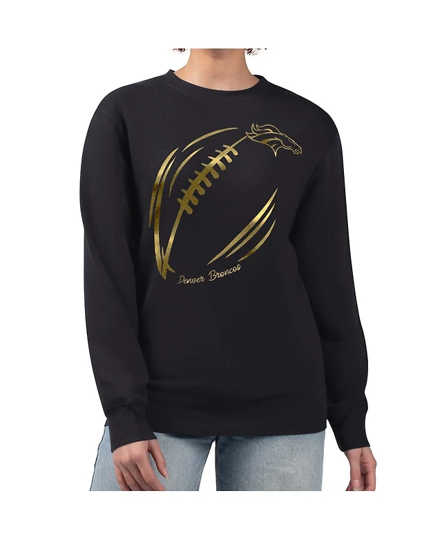 G-iii 4Her by Carl Banks Women's Black Denver Broncos Metallic Print Football Sketch Fleece Crewneck Sweatshirt