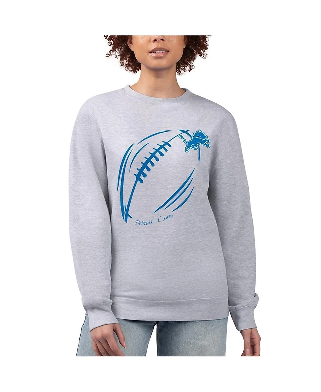 G-iii 4Her by Carl Banks Women's Heather Gray Detroit Lions Football Logo Graphic Fleece Tri-Blend Pullover Sweatshirt
