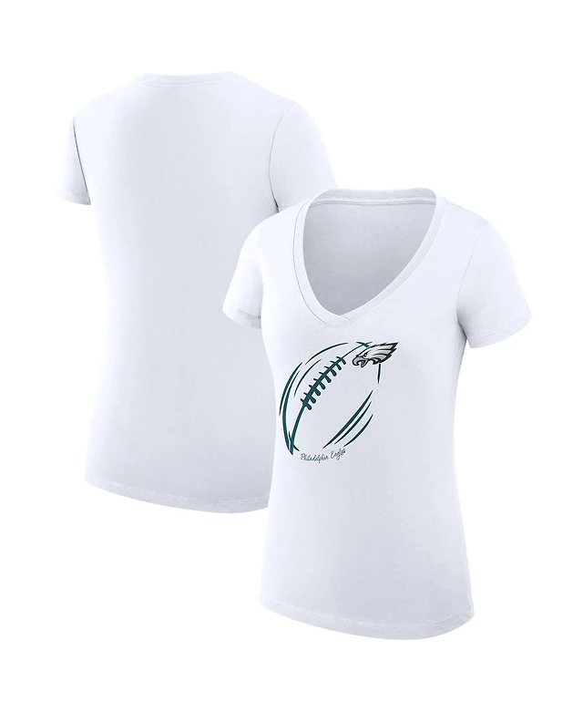 G-iii 4Her by Carl Banks Women's White Philadelphia Eagles Super-Slim Fit Lightweight Subtle Football V-Neck T-Shirt