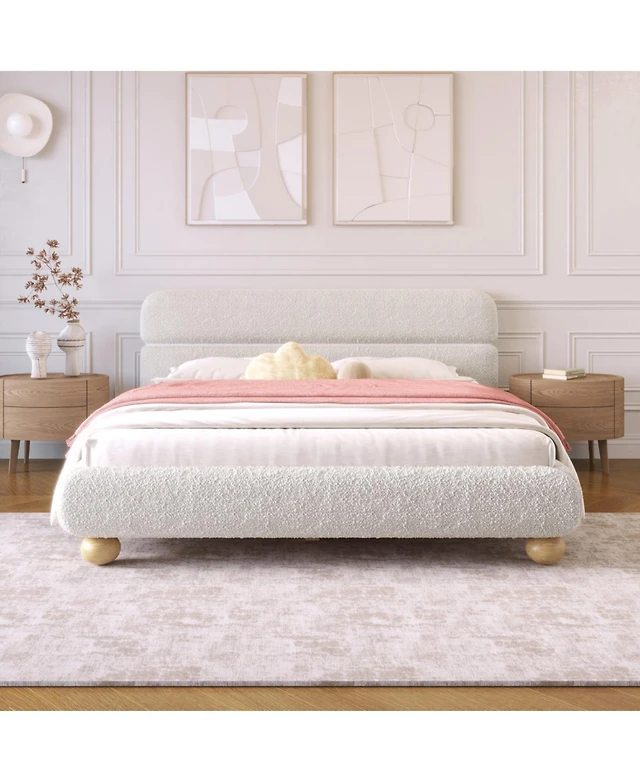 Streamdale Furniture King Size Boucle Upholstered Curved Headboard Bed Frame, White