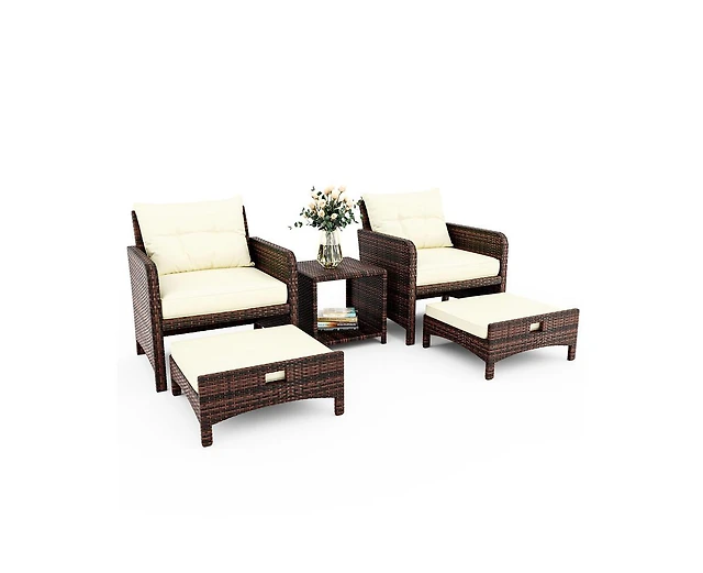 Sugift 3 Pieces Outdoor Patio Corner Rattan Sofa Set