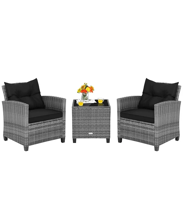 Gymax Set of Outdoor Patio Rattan Conversation Furniture Set w/ Cushion Table