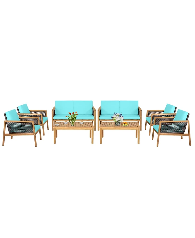 Costway 8 Pcs Outdoor Acacia Wood Sofa Furniture Set Cushioned Chair Coffee Table Garden