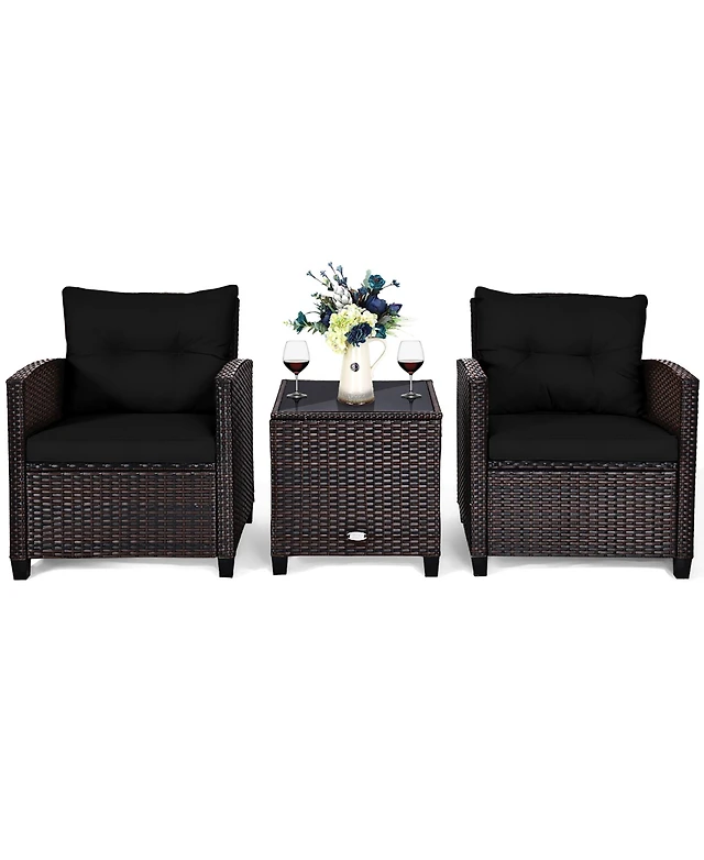 Gymax 3 Piece Patio Rattan Furniture Set Conversation Sofa w/ Cushions