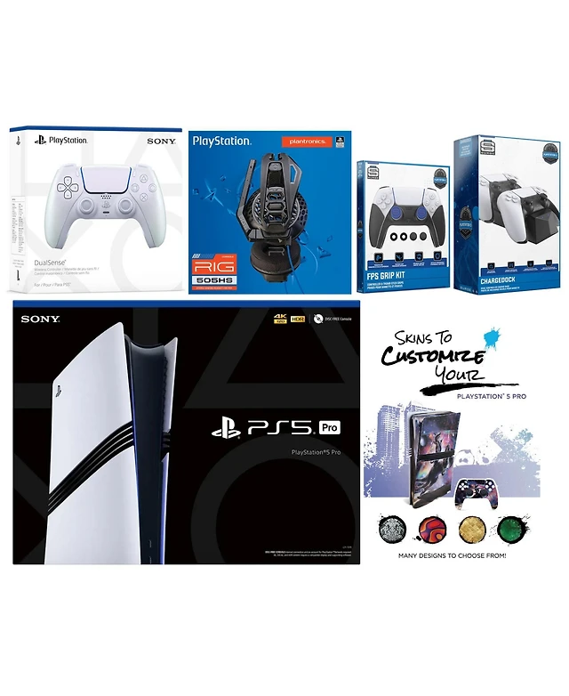 Sony Playstation 5 Pro Bundle with Extra Edge Controller, Plantronics Headset, Fps Grip Kit, Dual Charge Dock and MightySkins Decal Voucher Plus 1 Yea