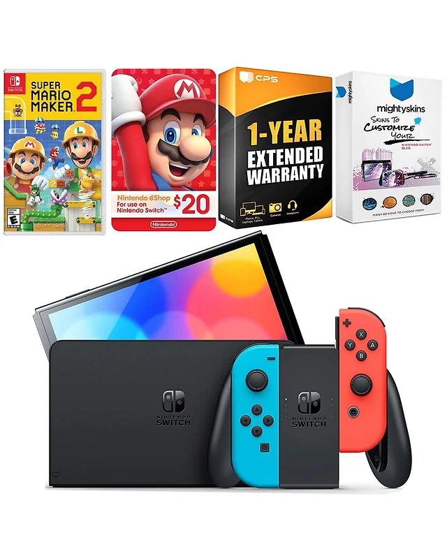 Nintendo Switch Neon Red & Blue Oled Console with Mario Maker 2, Nintendo $20 eShop Gift Card
