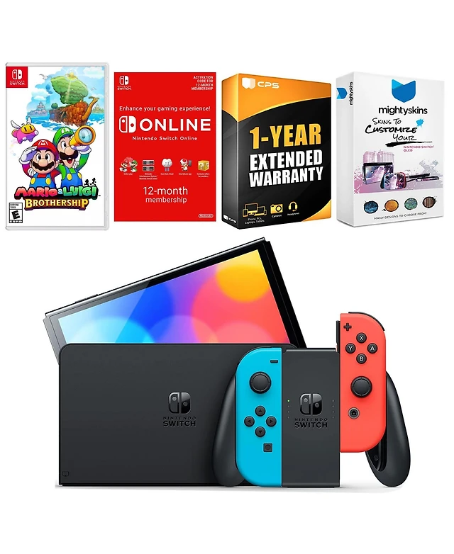 Nintendo Switch Neon Red & Blue Oled Console with Mario & Luigi: Brothership, Nso 12 Month Family Membership