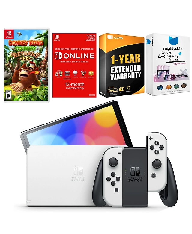 Nintendo Switch Oled Console with Pro Controller, MightySkins and Controller Skin Voucher, 1 Year Cps Extended Warranty