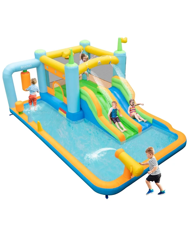 Kids Inflatable Water Slide Bounce Park Splash Pool w/Water Cannon & 480W Blower