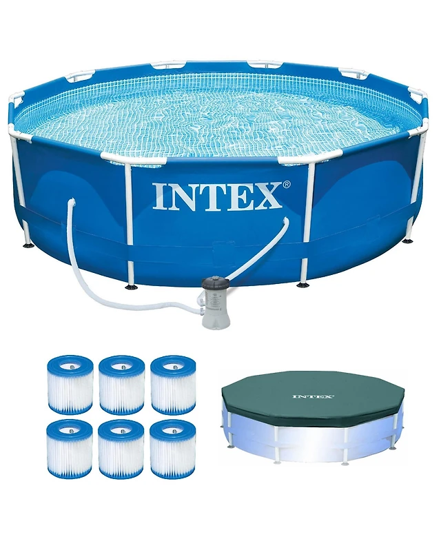 Intex 12ft x 30in Metal Frame Above Ground Round Family Swimming Pool Set & Pump