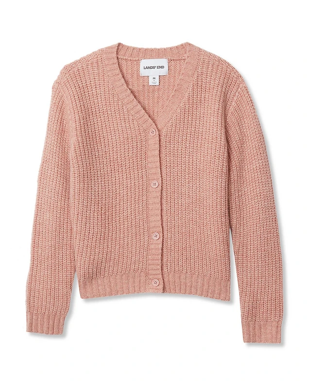 Lands' End Girls Button Front Knit Sparkle Cardigan
