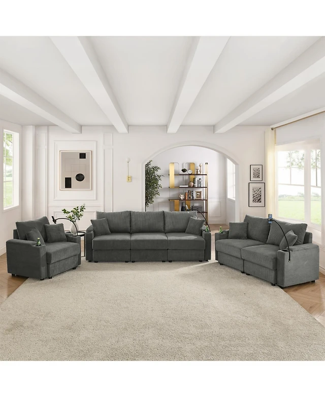 Streamdale Furniture Corduroy Curved Sectional Sofa with 12 Pillows (6 Modules